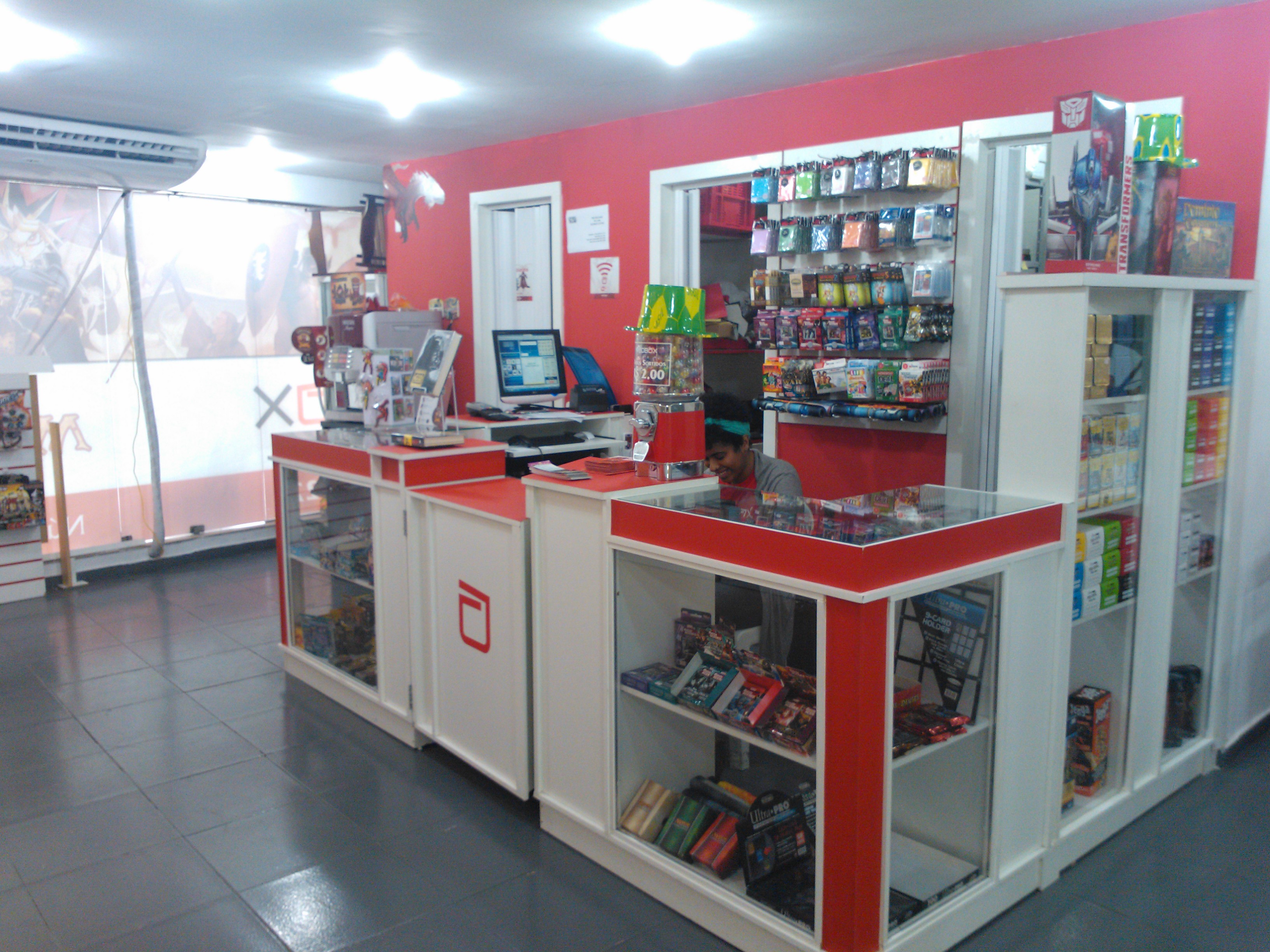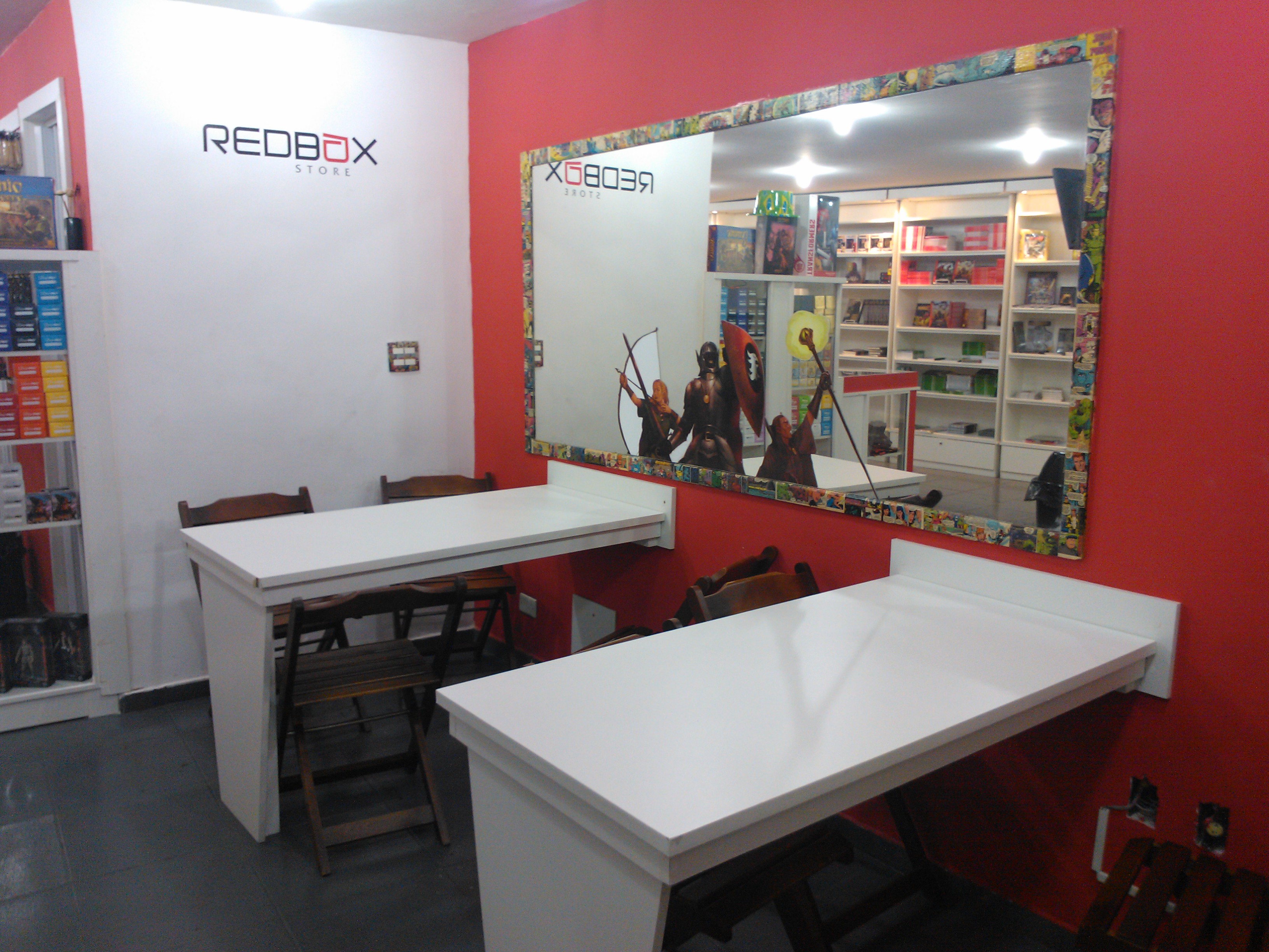 Aproveitando minha semana de recesso escolar viajei ao Rio de Janeiro com a família. Entre vários passeios que fizemos pela cidade maravilhosa fui até a loja da Redbox no centro do Rio para conhecê-la. Achei a loja bem legal com muito material à venda tanto da editora quanto publicações de outras empresas, além de acessórios para jogos, como dados, sleeves, counters, etc. Há também Jogos de tabuleiro, Card Games e quadrinhos. Além disso a loja tem um bom espaço caso jogadores queiram combinar uma jogatina por lá ou simplesmente encontrar os amigos para um bom bate papo. No mesmo andar da loja funcionam vários lanchonetes e dois restaurantes self-service o que facilita se a fome bater. Confiram as fotos.