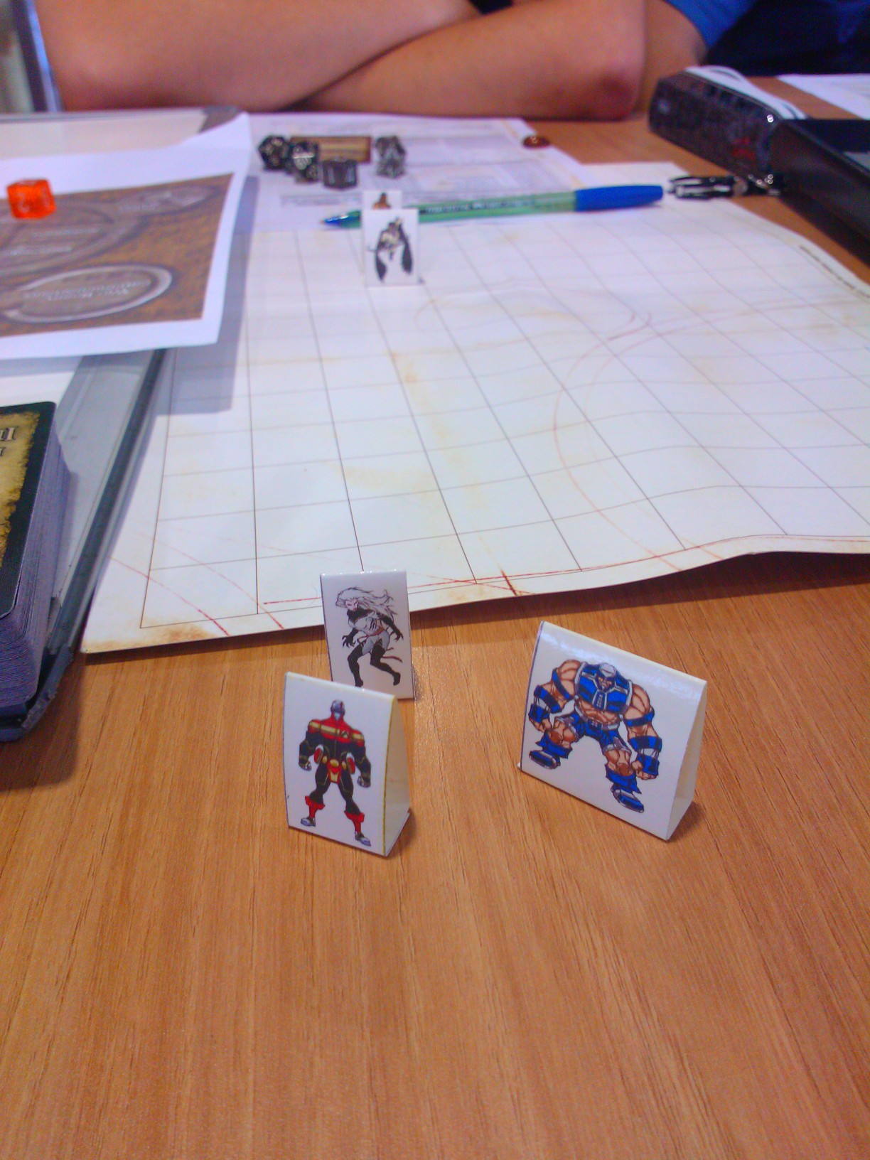 Miniaturas e mapa prontos para uma aventura de SW Supers.