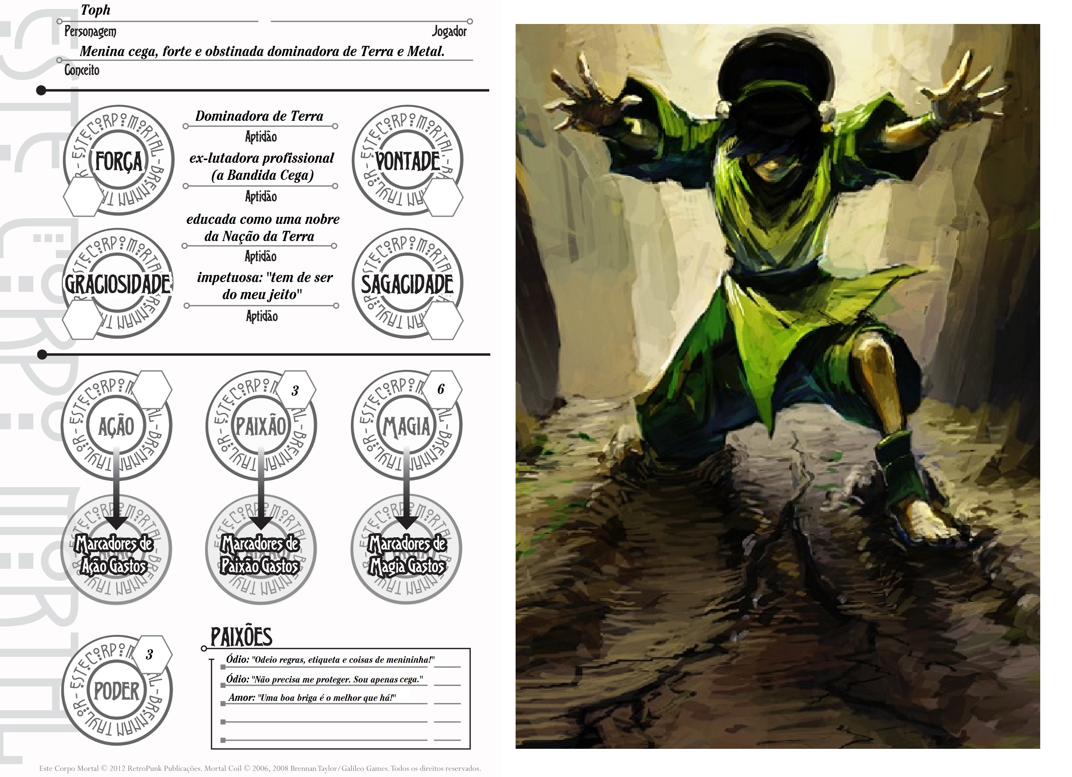 Pré-estabelecidas. Porém, no caso de uma campanha, recomenda-se utilizar expressões simples que identifiquem ocupações, tendências e relações com elementos inerentes ao cenário. Exemplos: “Educada como nobre na Reino da Terra”, “Criado no mosteiro”, “Conheço todos os antigos rituais de chá”, “Vendedor de repolho de Omashu”, etc.