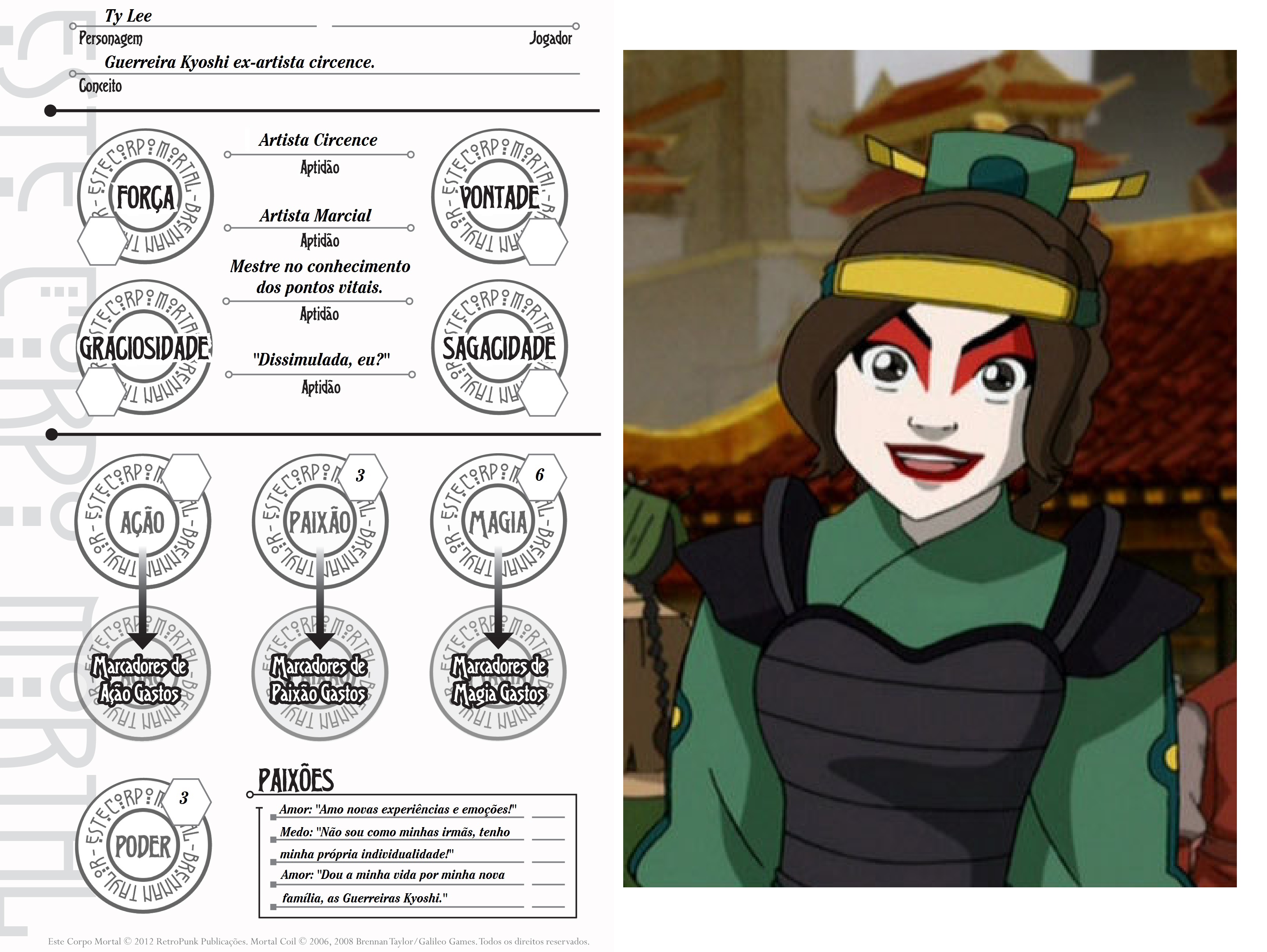 • 11 pontos a serem distribuídos nas Capacidades (Força, Graciosidade, Sagacidade e Vontade) – máximo 5 em cada Capacidade;