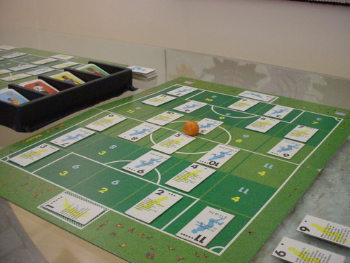 Um dado de 3 lados (você nunca viu isso, né?) é usado quando um jogador da defesa quer interceptar um passe feito pelo adversário que passa perto de um jogador seu. O resultado de 3 é o único que intercepta, mudando a direção da bola. Toda vez que um dos dois jogadores tira o resultado de 1, em qualquer um dos dados do jogo, o marcador de tempo se move. Os 90 minutos são divididos em 9 espaços de tempo para cada período do jogo, e caso o jogo termine empatado existe um acréscimo, colocando um novo marcador com 6 espaços para marcar o período da prorrogação. Existem regras também para decisão por pênaltis.