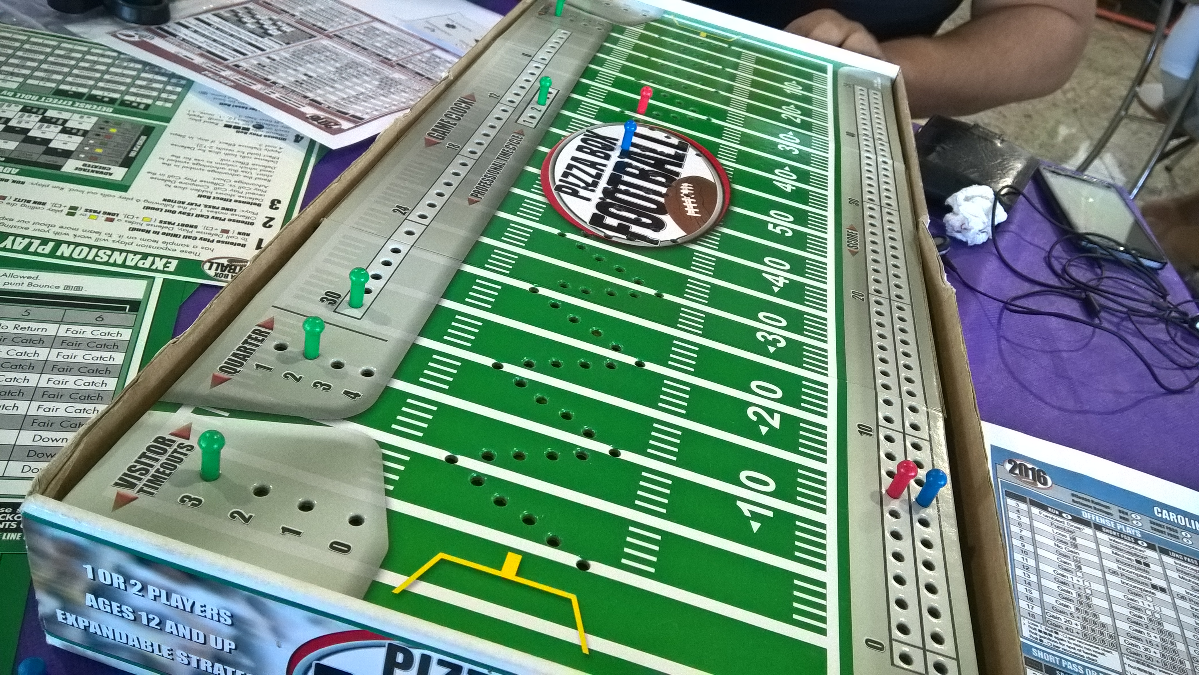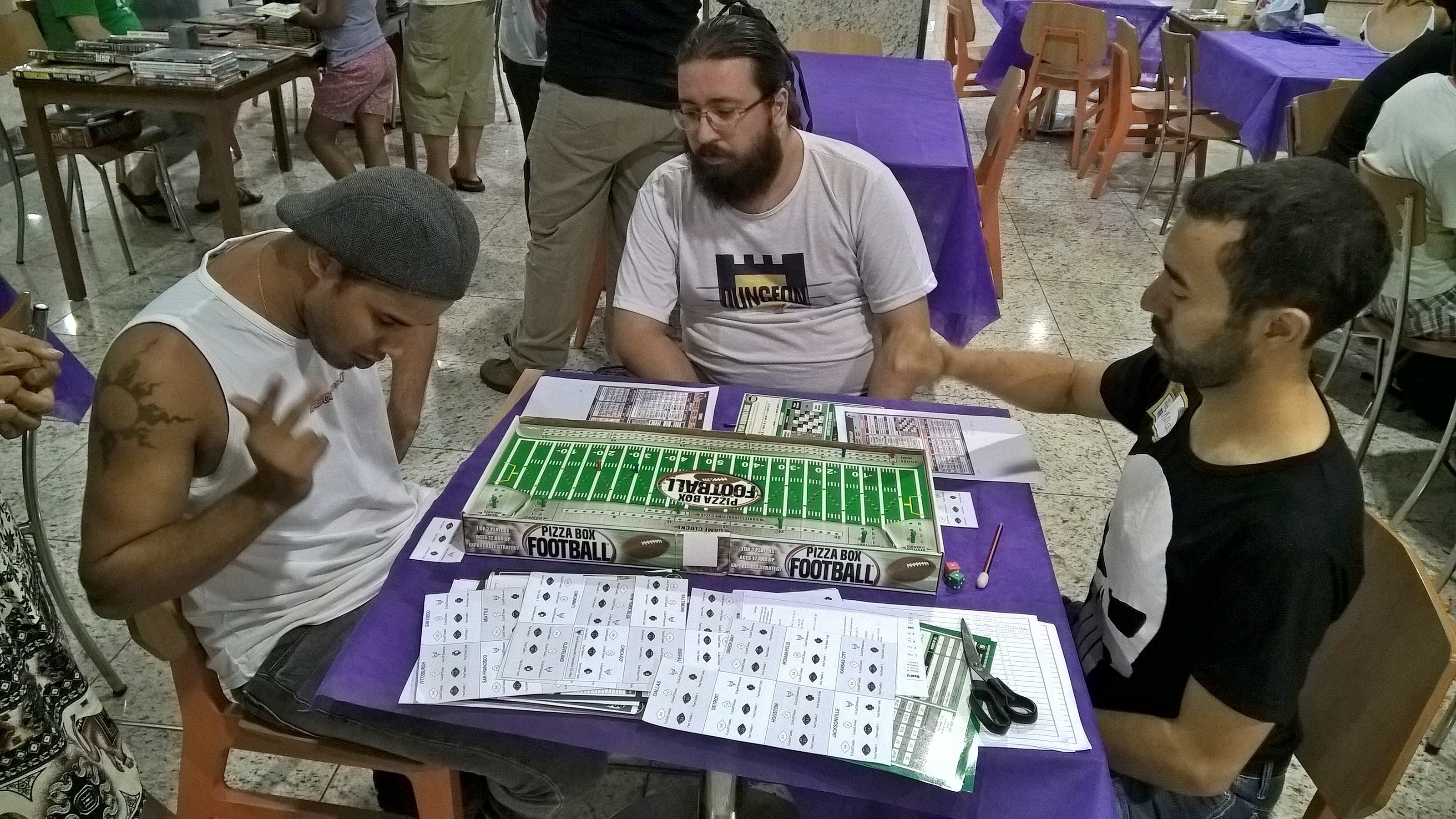 Entre os dias 27 e 28/02 foi realizado o 10º Encontro de Jogos Analógicos da Dungeon Capixaba, na praça de alimentação do Shopping Montserrat, em Serra/ES. Entre suas atrações aconteceu o 1º Board Bowl Capixaba, campeonato de futebol americano de tabuleiro usando o Pizza Box Football da On The Line Game Company, criado por Erik e Scott Smith, dois irmãos, fanáticos por futebol americano. O jogo é um dice game onde fichas estatísticas de cada time dão o resultado do rolamentos dos dados a cada jogada. A estratégia do jogo está em blefar contra o adversário sobre qual jogada seu time pretende executar no ataque para que ele pegue os dados errados para tentar bloquear a sua jogada com a defesa, e quando a situação se inverter que sua defesa seja capaz de interpretar corretamente a jogada de ataque do adversário e tentar impedi-la.