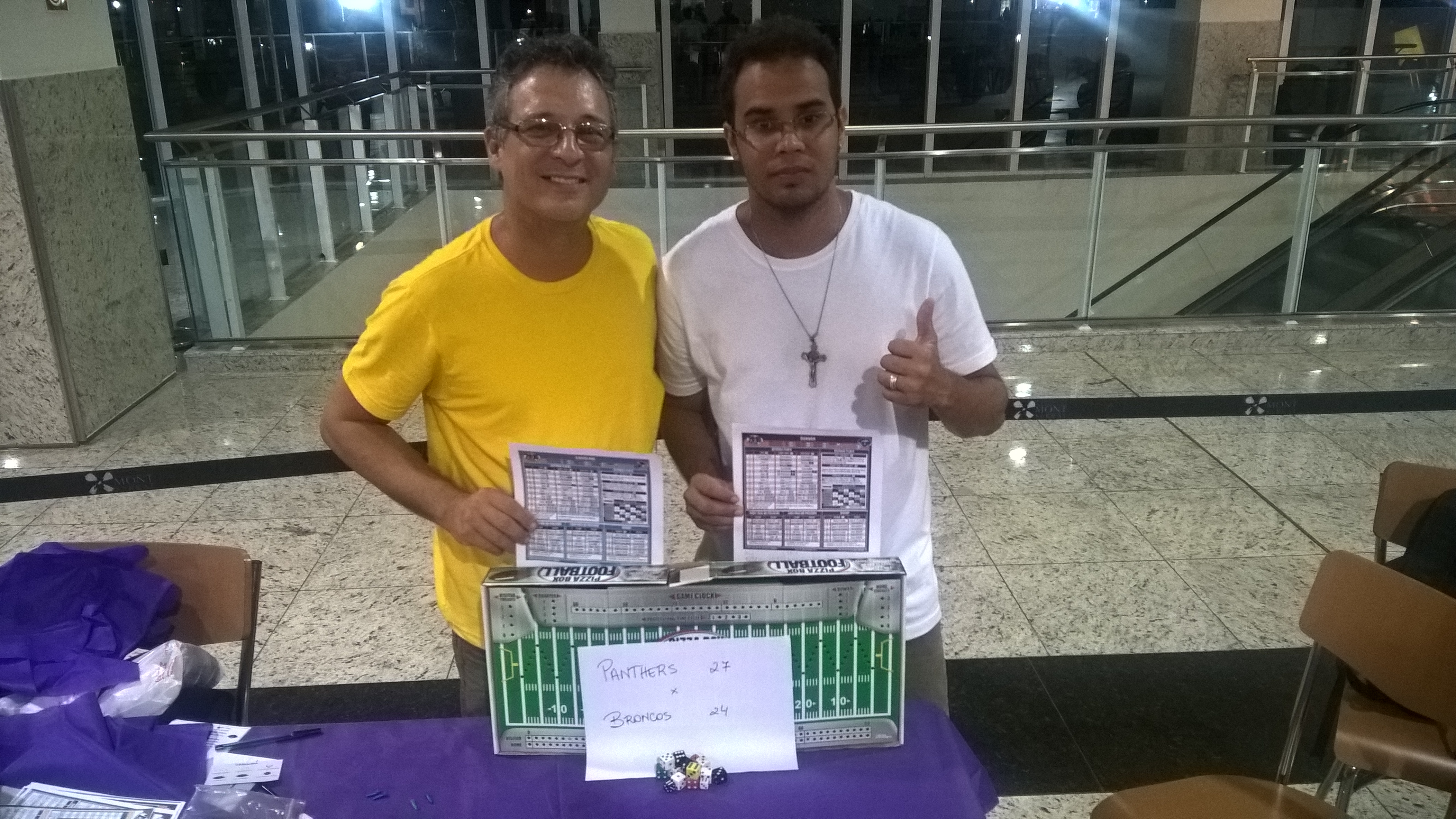 Pelo sorteio que fizemos eu fiquei com o Carolina Panthers e Israel Oliveira ficou com o Arizona Cardinals. A ficha do Carolina mostrava que a equipe era boa na corrida e com a defesa acima da média para evitar passes curtos. Já a do Arizona mostrava uma equipe equilibrada, sem nenhum destaque em particular, mas excelente na recuperação de bola em erros adversários.