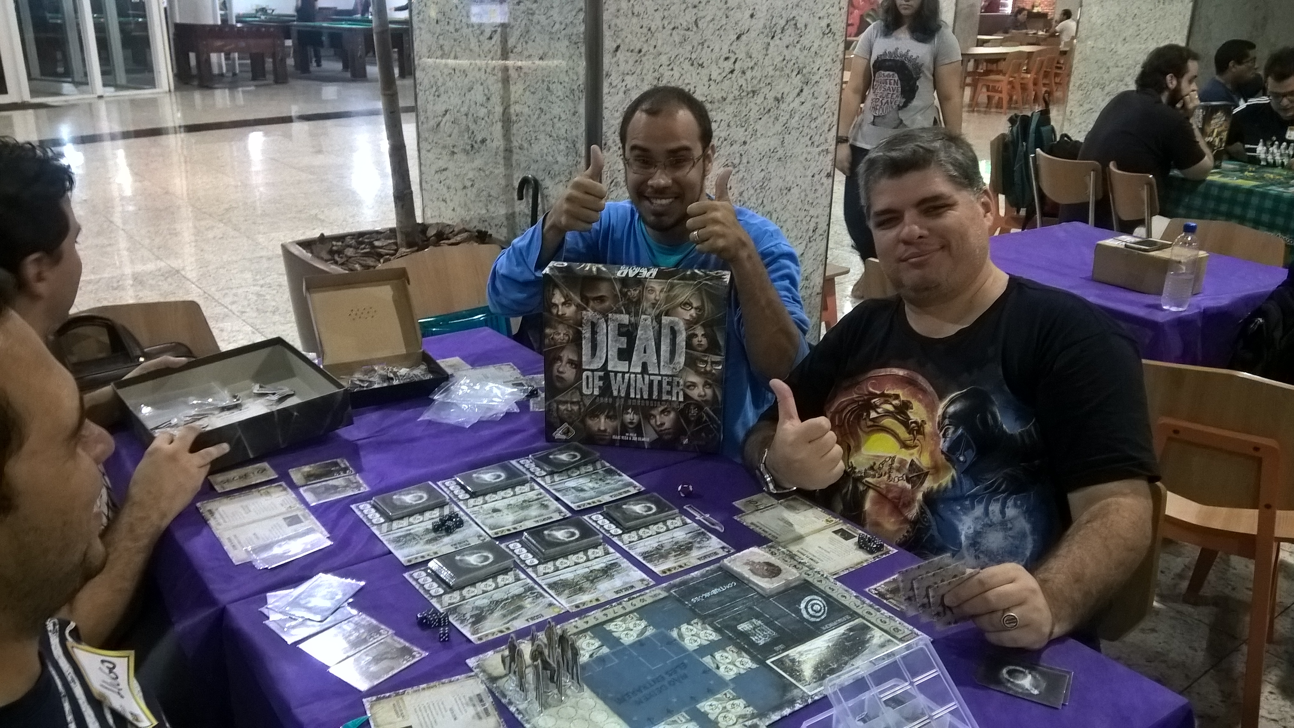 Tivemos também muito RPG no evento, com o Velhinho do RPG narrando uma sessão Witchcraft no domingo e organizando junto com os jogadores de dois storygames no sábado, um de Fiasco Cthulhu e outro de Winter Tales. Aliás Winter Tales encantou muita gente durante o evento. Não sabe que jogo é esse? Então clique AQUI e saiba mais sobre ele. Além dele Gustavo Costa e Marcos Santos também narraram aventuras durante o evento.