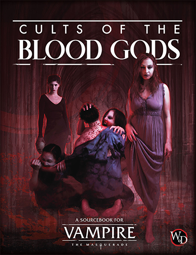 Cults of Blood Gods é um suplemento para Vampiro: A Máscara 5ª edição que entrou em financiamento coletivo ano passado e está sendo entregue aos financiadores do projeto aos poucos, já que ele bateu várias recompensas. O suplemento detalha as várias religiões do mundo dos Vampiros, apresentando todos os tipos de crenças e cultos religiosos vampíricos, alguns assustadores e estranhos, enquanto outros são construídos em torno da adoração à matusaléns, ritos sagrados, textos antigos, heresias e dogmas, usados pelos cultistas para atingirem seus objetivos sombrios.