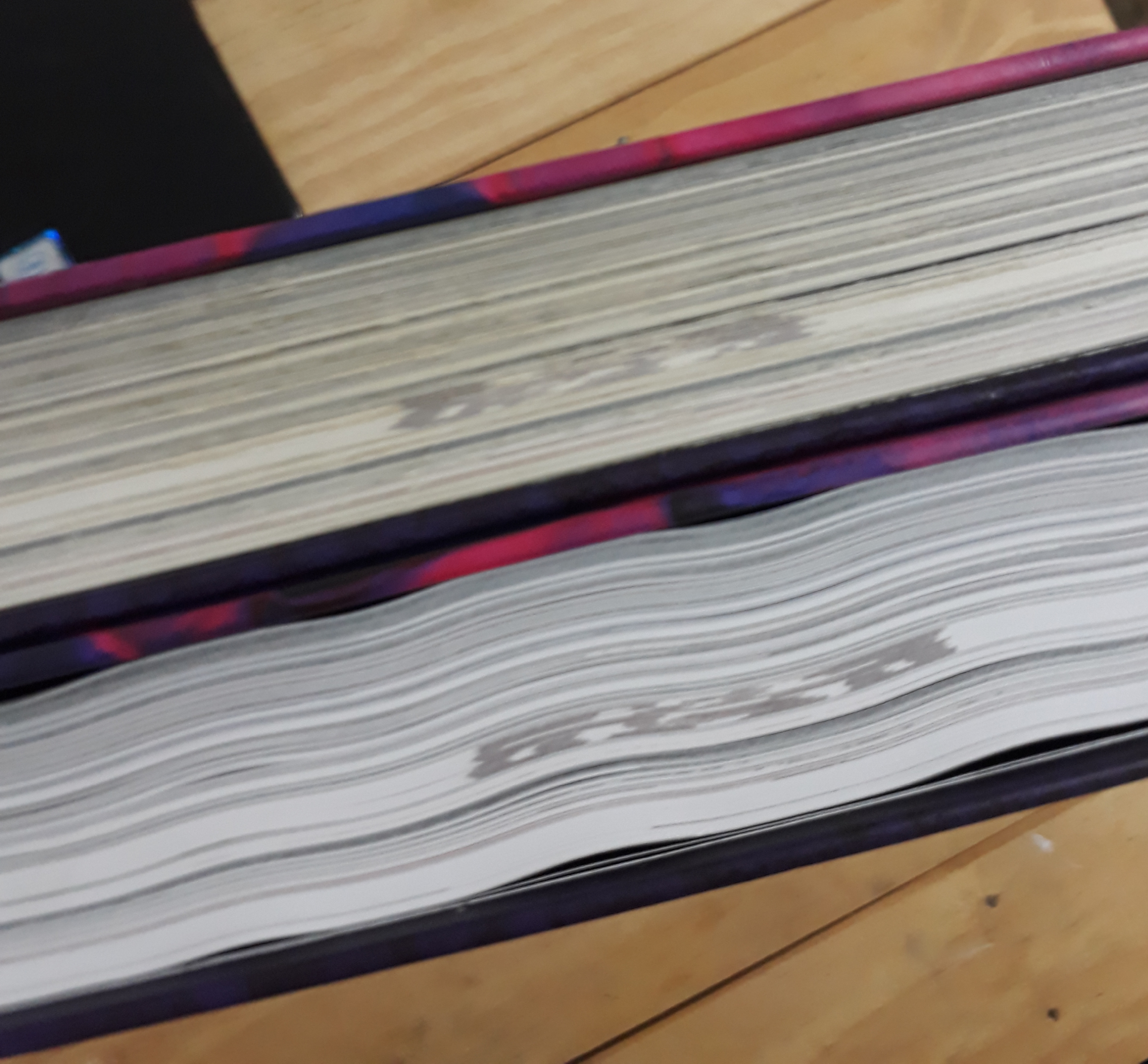 Uma coisa que eu não gostei, mas é um detalhe que já vi acontecendo em outros livros de edições nacionais, é a qualidade das páginas que parecem ser inferior da original. As páginas da edição importada parecem possuir uma gramatura pouca coisa maior em comparação da edição nacional, e isso talvez faça as páginas ondularem em suas extremidades depois de receberem impressão. Atrapalha? Não. Fica feio? Pra mim sim. A encadernação apesar de ser padrão nacional, não compromete, mas quando comparamos com a encadernação importada percebesse ser um pouco inferior, principalmente quando viramos as páginas.