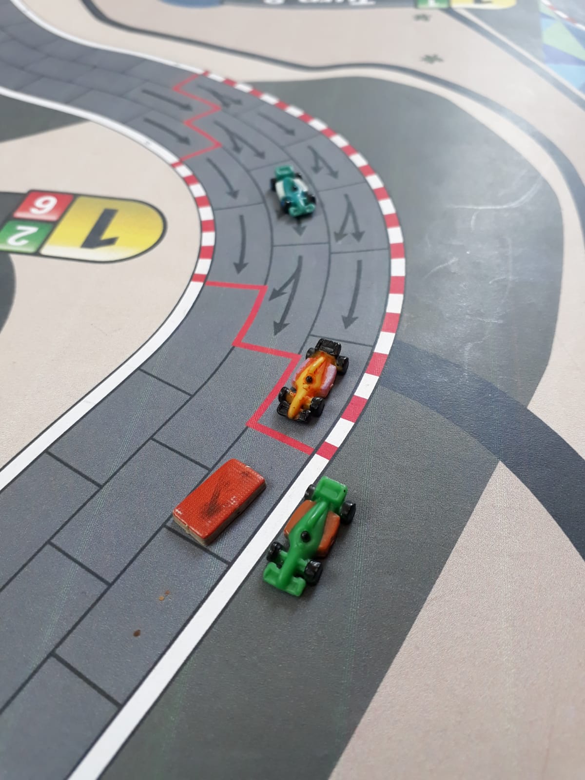 Há anos usamos algumas regras caseiras para dar mais sabor ao jogo. Não são nada demais, que ferem ou mudam radicalmente o jogo. A primeira é sobre testes de colisão. Ao invés da regra oficial de sempre o piloto fazer um teste de colisão caso pare ao lado de outro carro, usamos a regra de só se fazer teste caso um piloto pare atrás de outro carro. E somente o piloto que faz o movimento de encostar em outro carro é que faz o teste.