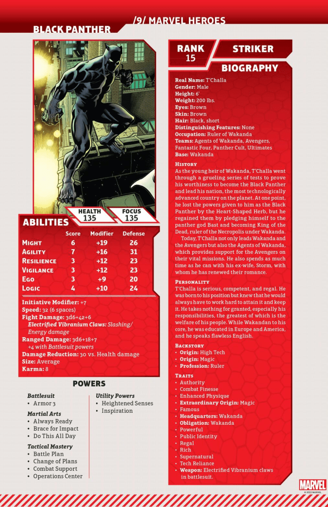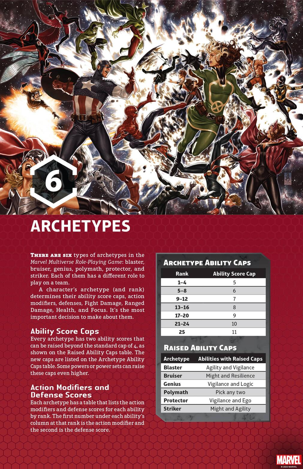 O jogo está sendo desenvolvido para dar maior liberdade possível ao jogador na hora de criar seu personagem além de potencial ilimitado para os narradores, querendo torná-lo tão popular quanto D&D 5E. Talvez por isso muito do seu design lembre tanto D&D, como por exemplo a escolha de classes de personagens, que podem ser: blaster, bruiser, genius, polymath, protector e striker, onde cada um possui um conjunto de habilidades e modificadores de ação, defesas, dano de luta, dano à distância que o destaca dos demais em alguma área. Usa também seis atributos básicos com um detalhe importante: a inicial de cada um deles forma a palavra MARVEL (Mighty, Agility, Resilience, Vigilance, Ego, Logic). Todo o conjunto de regras e sua estrutura para construção de personagens lembra o RPG mais popular do planeta, e seus desenvolvedores não escondem a inspiração. Segundo o designer Matt Forbeck o Sistema d616 foi criado com a ideia que as histórias contadas pelos narradores, e as batalhas que aconteçam no jogo, pareçam vir diretamente de uma história da Marvel, o que segundo ele os sistemas anteriores não conseguiam, mesmo adicionando outras ferramentas, como uso de cartas, pontos heróicos, etc.