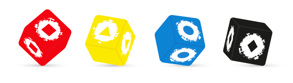 Por sua vez, dados coloridos são utilizados para a resolução de conflitos, os testes do jogo. Durante um conflito a cor deles faz diferença: os dados de poder (vermelho) referem-se à força e precisão de uma ação; os dados de tempo (amarelo) referem-se à velocidade e duração de uma ação; os dados de tamanho (azul) referem-se à escala e amplitude de uma ação; e os dados de dificuldade (preto) referem-se aos elementos atuantes em desfavor do personagem durante uma ação.
