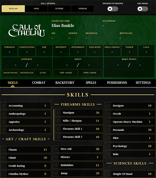 Para quem não sabe o Roll 20 é uma plataforma online projetada para fornecer aos jogadores e mestres um espaço para jogar RPGs de mesa remotamente, cada um em sua casa. Incluído no conjunto inicial de RPG de terror está um conjunto de regras introdutórias para ajudar os jogadores e mestres a aprender, jogar Chamado de Cthulhu. Embora as Regras Introdutórias não apresentem as regras detalhadas necessárias para planejar e executar uma campanha completa de Chamado de Cthulhu, elas são suficientes para um grupo experimentar. O Starter Set no Roll20 foi projetado para ser usado com a própria plataforma online, o que significa que os jogadores e o mestre podem abrir e interagir com eles dentro do próprio Roll20.
