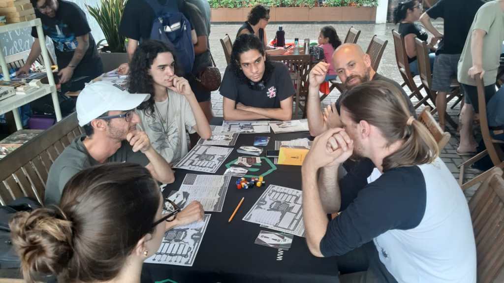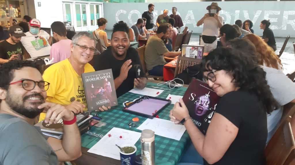 Além dessas mesas teve as minhas também. Narrei duas vezes no evento a mesma aventura de Vampiro: A Máscara 5ª ed., e pra mostrar que o RPG é um entretenimento diferenciado as duas aventuras que teve os mesmos personagens pré-fabricados, o mesmo enredo, o mesmo clima e tema, os mesmos NPCs, teve desenvolvimento e conclusões completamente diferentes. Isso tudo porque no início de cada aventura os grupos fizeram opões diferentes levando a desenvolvimento de tramas totalmente oposas.