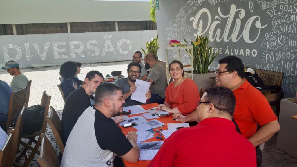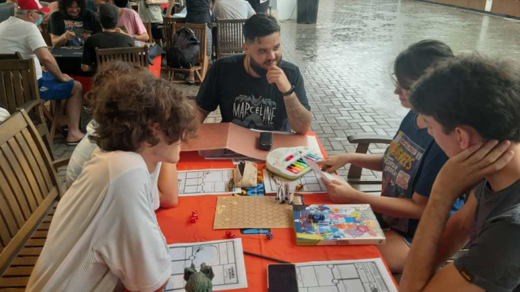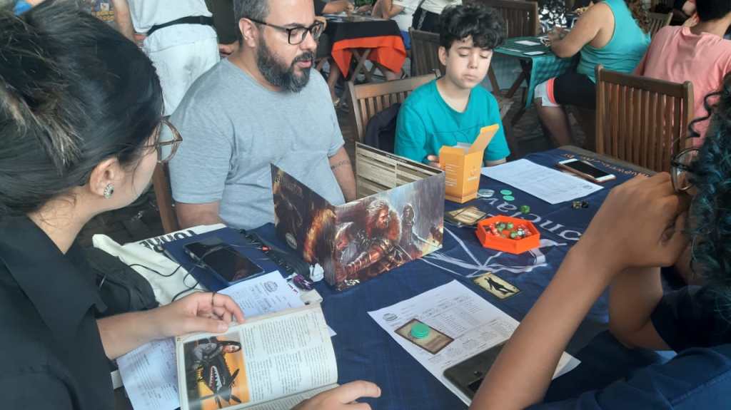 Ontem foi dia de encontro de jogos de mesa da Dungeon Capixaba na cidade de Serra, no Espírito Santo. E foi dia de jogar muito RPG com as várias mesas que estiveram a disposição dos jogadores, além da entrega das recompensas do financiamento coletivo do livro de As Chaves da Torre, de autoria de Arthur de Andrade que esteve presente ao evento.