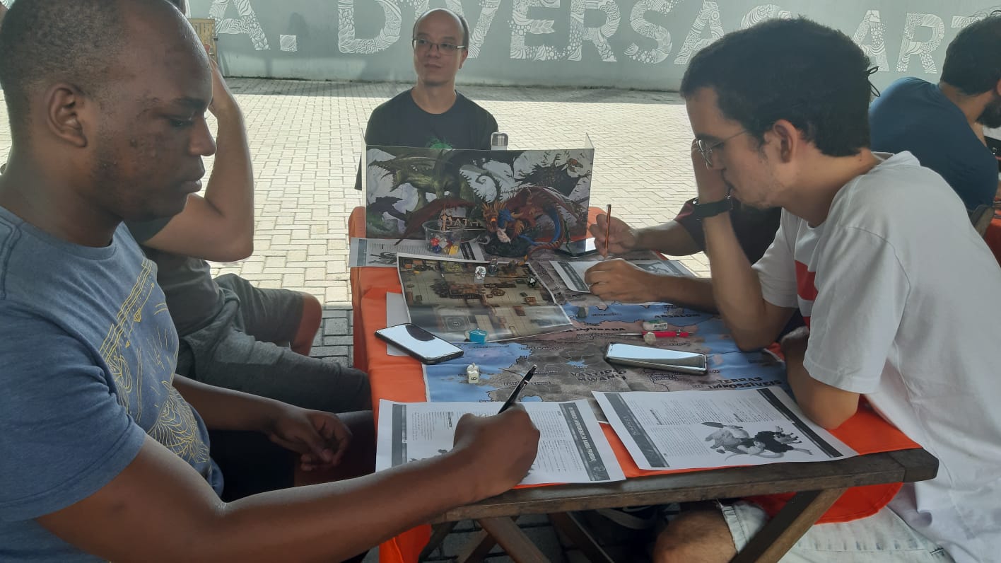 O encontro aconteceu no Pátio do Shopping Mestre Álvaro, localizado no bairro de Eurico Salles, e reuniu cerca de 150 jogadores durante todo o dia. Muitos foram atrás de mesas de RPG e não se decepcionaram, porque o cardápio estava variado.