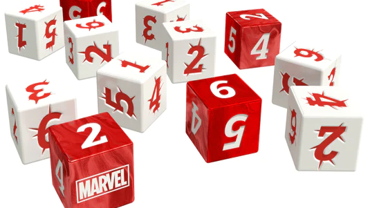 Essa parte foi pouco alterada e gostei que deixaram dessa forma. O Marvel Multiverse Role-Playing Game usa o novo Sistema D616, em referência a Terra-616 que no Multiverso da Marvel corresponde a realidade dos maiores heróis da editora, e que por conta disso usa três dados de seis lados, sendo um deles de cor diferente (dado Marvel) para resolução dos testes.