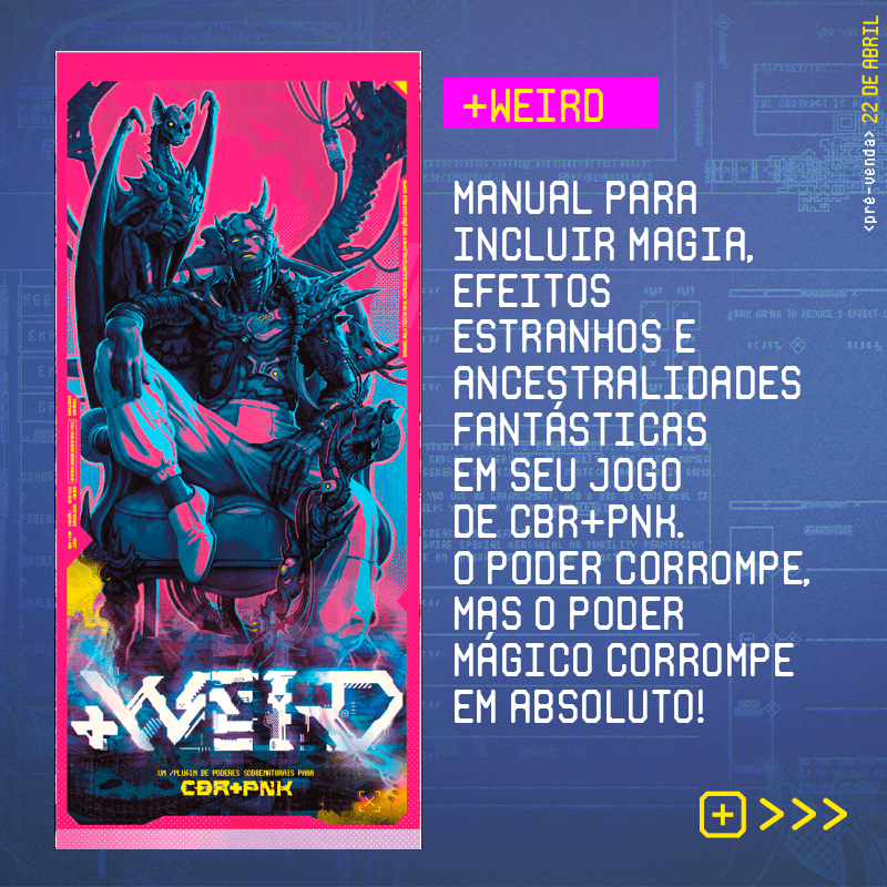 Essa variedade de materiais torna CBR+PNK uma escolha interessante para jogadores e narradores que curtem o cenário cyberpunk. Se você quiser saber mais detalhes sobre o jogo, pode visitar a página oficial do CBR+PNK na Secular Games. Lá, você encontrará informações sobre a versão em PDF, além de dois livretos especiais para download gratuito: MONARISE, uma megalópole para usar como cenário, e HUNTERS, um conjunto de regras para ameaças especiais e perigosas. Espero que tenham gostado do artigo, se quiserem fazer comentários e dar mais ideias podem fazer abaixo. Aproveito para pedir que me sigam nas redes sociais.