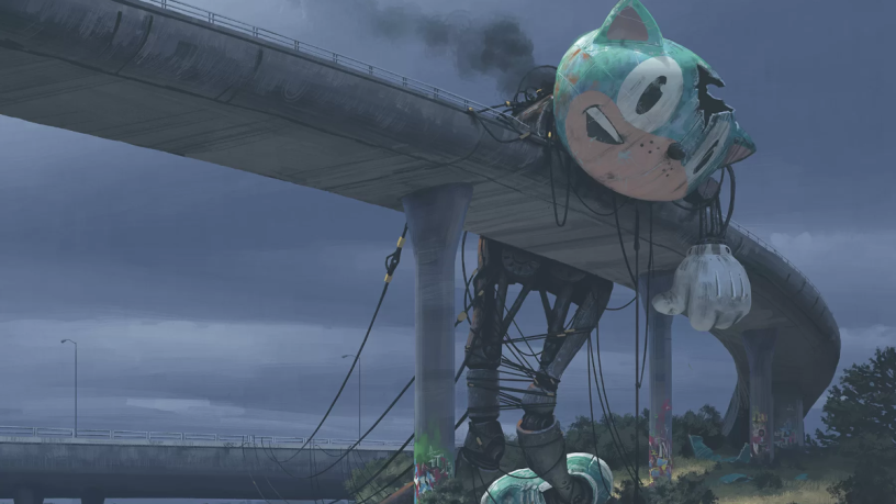 Em meio a essa distopia, os drones e robôs avançados, agora inutilizados ou em abandono, tornam-se apenas vestígios do passado. As cidades, apesar de sua infraestrutura tecnológica, estão desprovidas de vida. A relação entre os seres humanos e a tecnologia é questionada de forma intensa, enquanto a solidão resultante do colapso é uma realidade constante. Esse cenário poderia ser considerado um tipo de sci-fi retro cyberpunk pós-apocalíptico, situado nos anos 90, onde as consequências do excesso de tecnologia são devastadoras.