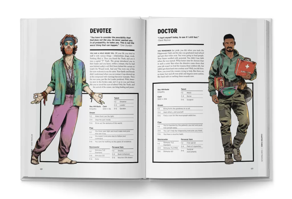 Os jogadores podem escolher entre uma variedade de arquétipos para seus personagens. Há 10 Arquétipos diferentes nesta seção, oferecendo uma ampla gama de opções, como Piloto de Drones, Engenheiro, Escoteiro, Garoto Fugitivo, entre outros, que têm habilidades específicas para interagir com o ambiente ou superar desafios. Cada personagem possui suas próprias habilidades, equipamentos e uma história pessoal que influencia sua motivação.