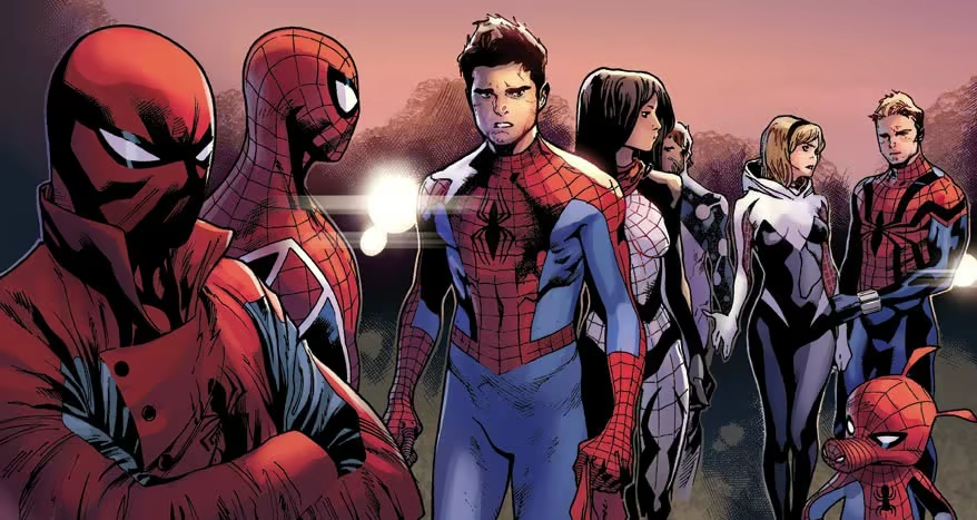 Antes da saga oficial, versões alternativas do Aranha já apareciam nos quadrinhos desde os anos 80, como o Homem-Aranha 2099 (Miguel O’Hara) ou o Aranha Escarlate (Ben Reilly), mas foi com “Spider-Verse” que todas essas versões (e muitas novas) foram oficialmente unidas em uma única narrativa.