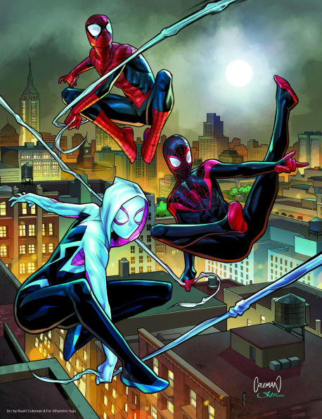 A origem do Aranhaverso (Spider-Verse) nos quadrinhos da Marvel começa oficialmente com a saga “Spider-Verse”, publicada entre 2014 e 2015, escrita por Dan Slott (vencedor de um Prêmio Eisner com Surfista Prateado) e ilustrada principalmente por Olivier Coipel (The Magic Order, Ambassadors – todos com Mark Milllar – , além de House of M, e Thor com J. Michael Straczynski).