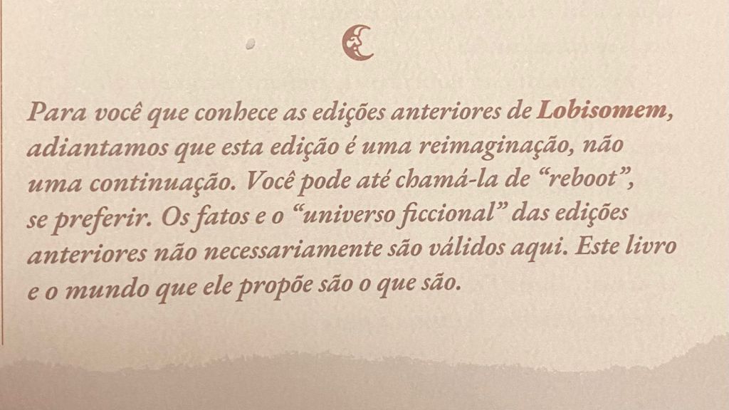E para aqueles que estão chegando agora à quinta edição de Lobisomem: O Apocalipse, é bom lembrar do aviso dado pela Renegade Game Studios no início do livro: