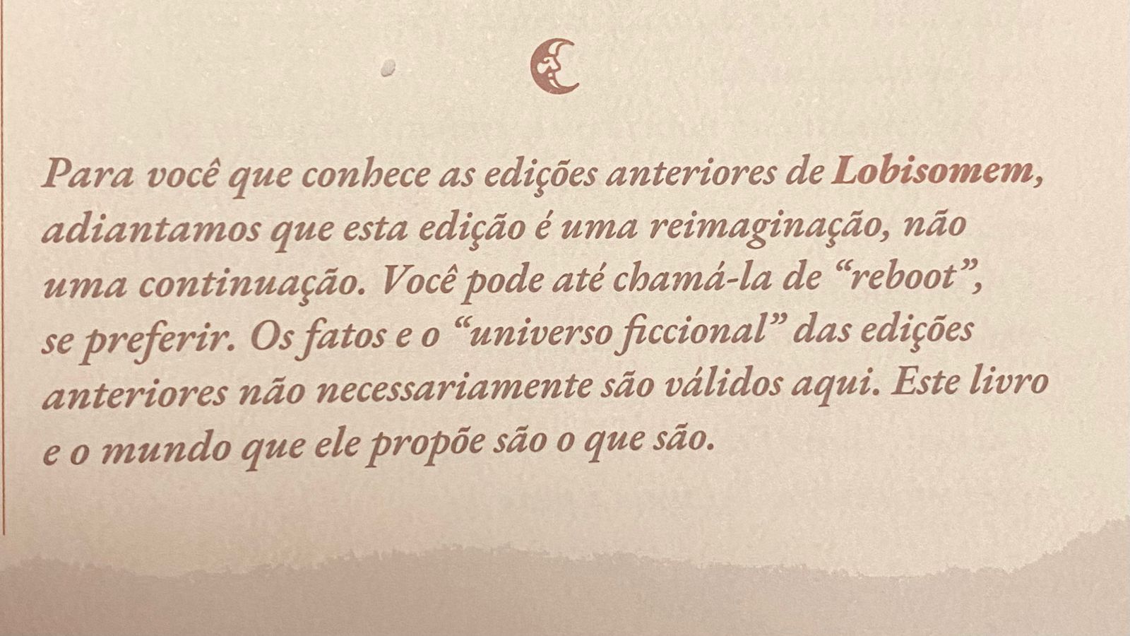 E para aqueles que estão chegando agora à quinta edição de Lobisomem: O Apocalipse, é bom lembrar do aviso dado pela Renegade Game Studios no início do livro: