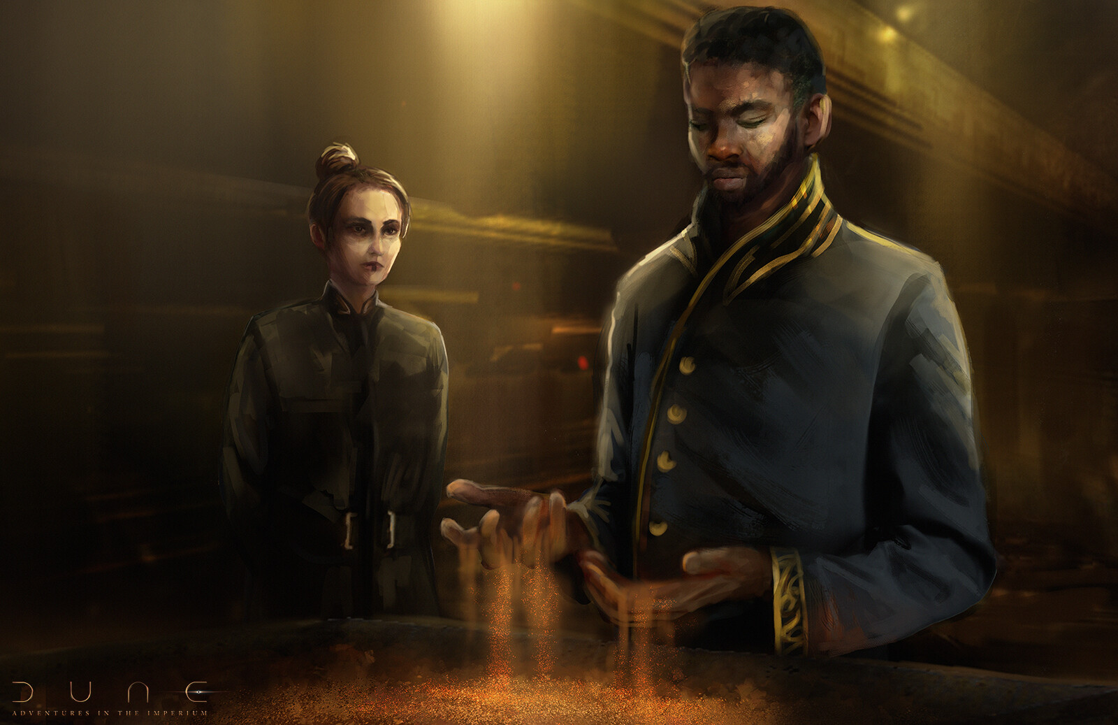 Arrakis, o planeta desértico que produz a especiaria melange, é muito mais do que um pano de fundo. Ele é uma força narrativa que influencia cada aspecto da vida no universo de Duna. Em Dune: Adventures in the Imperium, o deserto, com sua aridez implacável, tempestades de areia e vermes de areia (Shai-Hulud), cria um ambiente que desafia constantemente os jogadores, forçando-os a tomar decisões difíceis e a se adaptar. A escassez de água e a importância da especiaria também reforçam os temas centrais do jogo: sobrevivência, poder e sacrifício.
