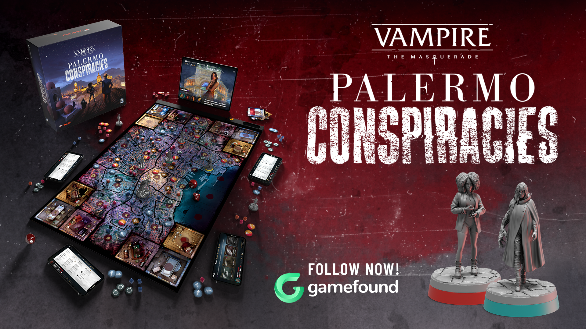 Como diz a descrição oficial no Gamefound: “Em Palermo Conspiracies, os jogadores investigam uma rede de conspirações que ameaça a frágil paz da cidade. Mas cuidado: cada escolha pode expor sua Máscara ou atrair inimigos mortais.” É isso aí – a paranoia vampírica em forma no tabuleiro!